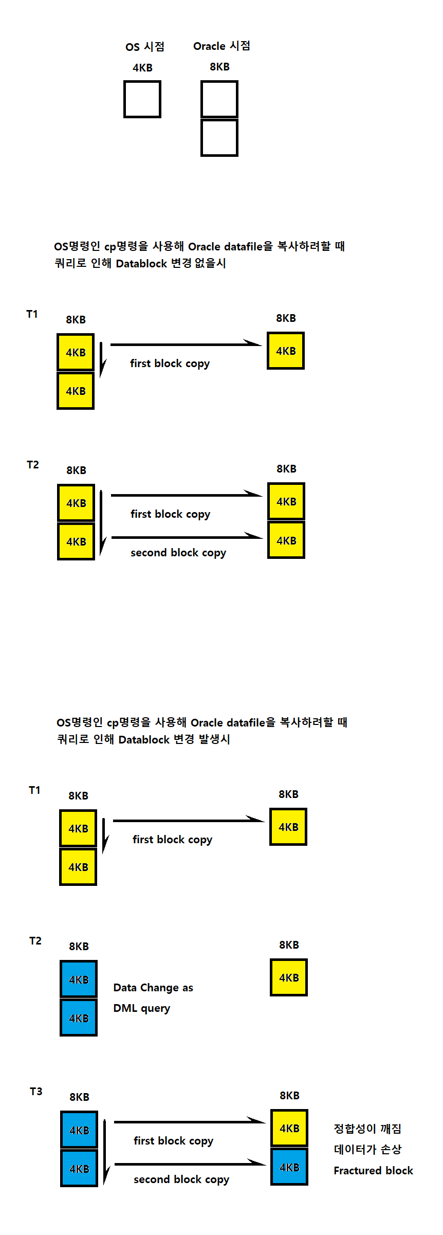 cp명령으로 복사중인 Datafile에 변경을 가하지 않고, Datafile의 손상없이 안전하게 cp명령을 사용해, OS level에서